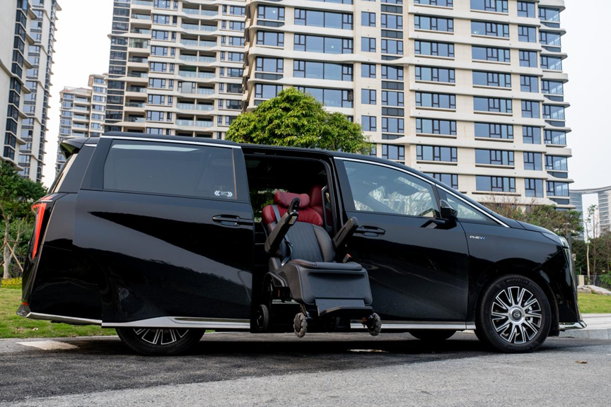 相比于2021年推出的M8福祉版,E9電動(dòng)福祉版最大的特點(diǎn)在于——可分離式的福祉座椅,座椅直接就能“下地跑”,直接變成電動(dòng)輪椅使用。