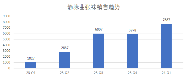 在瞄準(zhǔn)即時(shí)零售日常需求,覆蓋日常使用場(chǎng)景方面,康復(fù)之家選擇了靜脈曲張襪這一典型日常備貨。在2023年第二季度,康復(fù)之家即開(kāi)始布局靜脈曲張襪產(chǎn)品,在價(jià)格帶上做了補(bǔ)充,同時(shí)擴(kuò)大鋪貨范圍,該品類(lèi)銷(xiāo)售同樣大幅增長(zhǎng),24年第一季度體量已達(dá)到去年同期的7.5倍,獲得了即時(shí)零售業(yè)務(wù)的極大成功。
