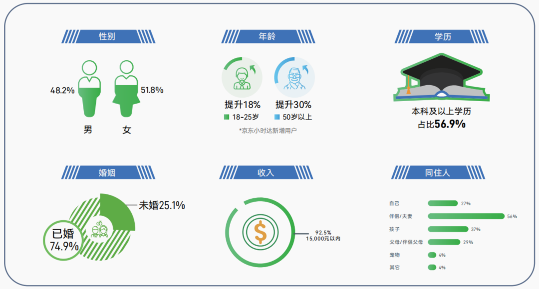 即時(shí)零售的消費(fèi)群體覆蓋面也不斷擴(kuò)大。京東到家2022年調(diào)研數(shù)據(jù)顯示,即時(shí)零售消費(fèi)群體主要以25-45歲之間人群為主。除主力人群外,2023年,新增用戶(hù)中,18-25歲的消費(fèi)者占比較2022年提升了18%,50歲以上即時(shí)零售消費(fèi)者群體則提升了約30%。