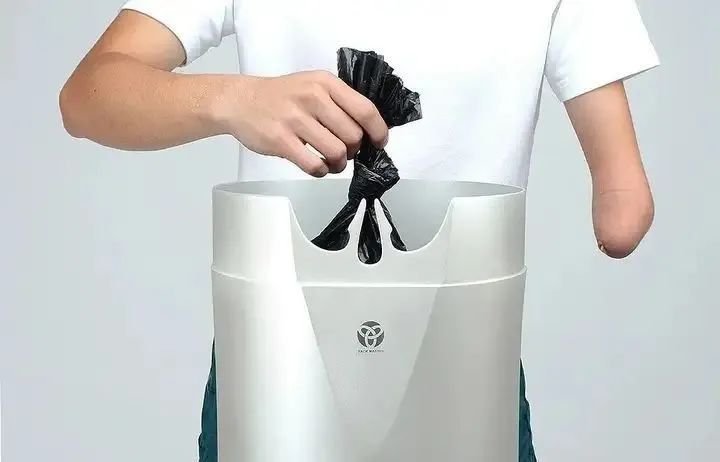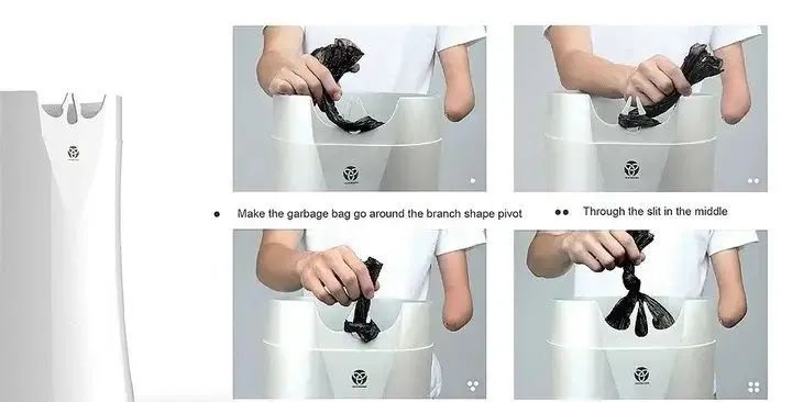 為殘疾人設(shè)計(jì)的單手垃圾桶,可以單手輕松包扎好垃圾袋,讓少部分人的需求得到滿足,并且注重設(shè)計(jì)的美觀和耐用性。