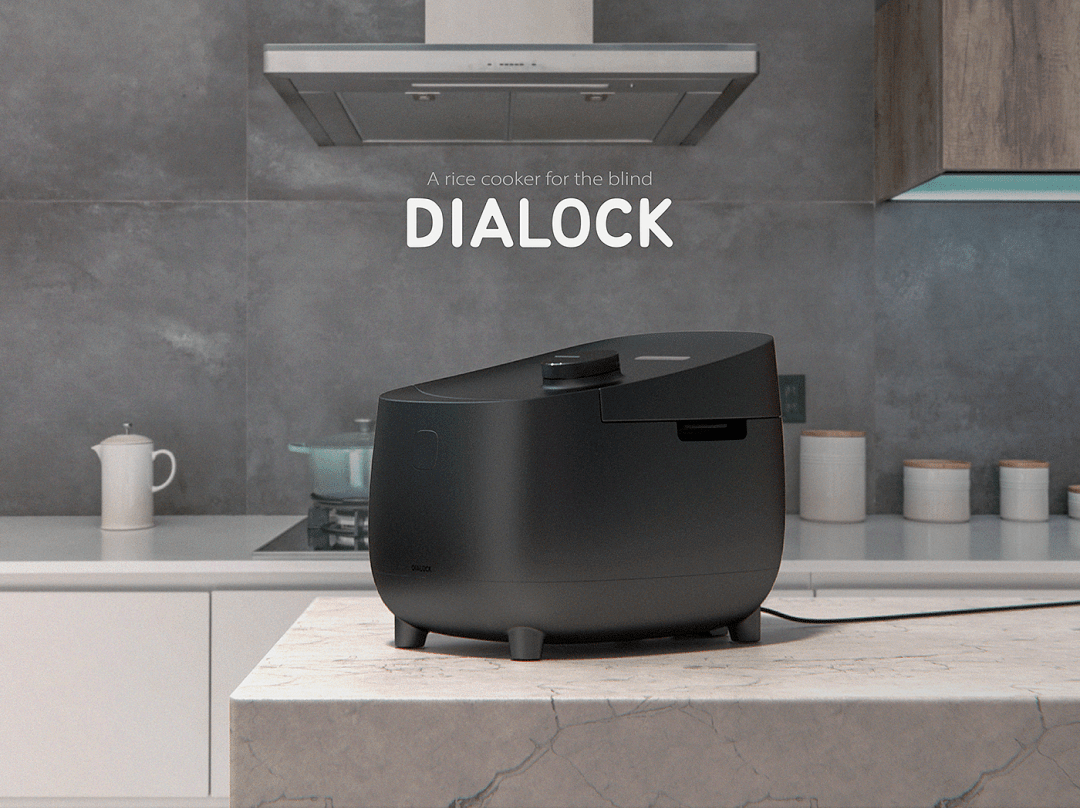 “Dialock”是一款只用手的感官就能輕松操作的通用電飯煲。視障人士在日常生活中,即使是煮飯這樣的簡單動(dòng)作,也常常很難處理。因?yàn)楝F(xiàn)有電飯煲操作按鈕過于復(fù)雜,視障人士難以準(zhǔn)確識別和使用。Dialock去除了太多而復(fù)雜的操作按鈕,使視障人士能依靠手感來使用。