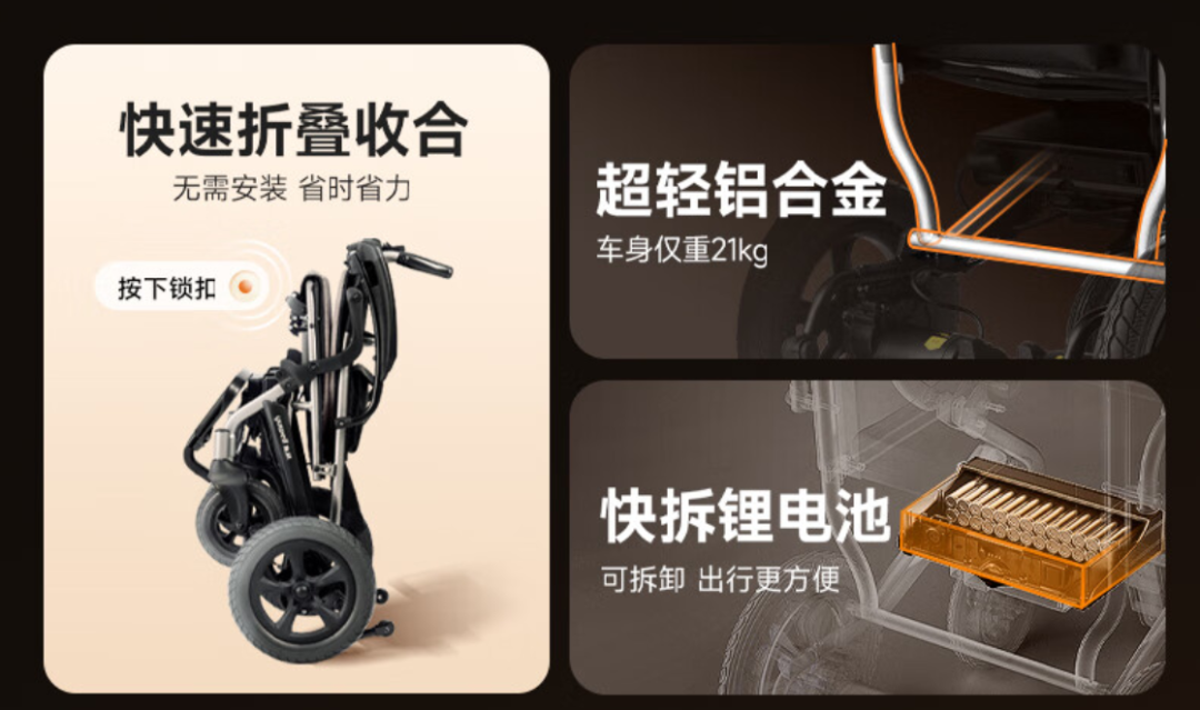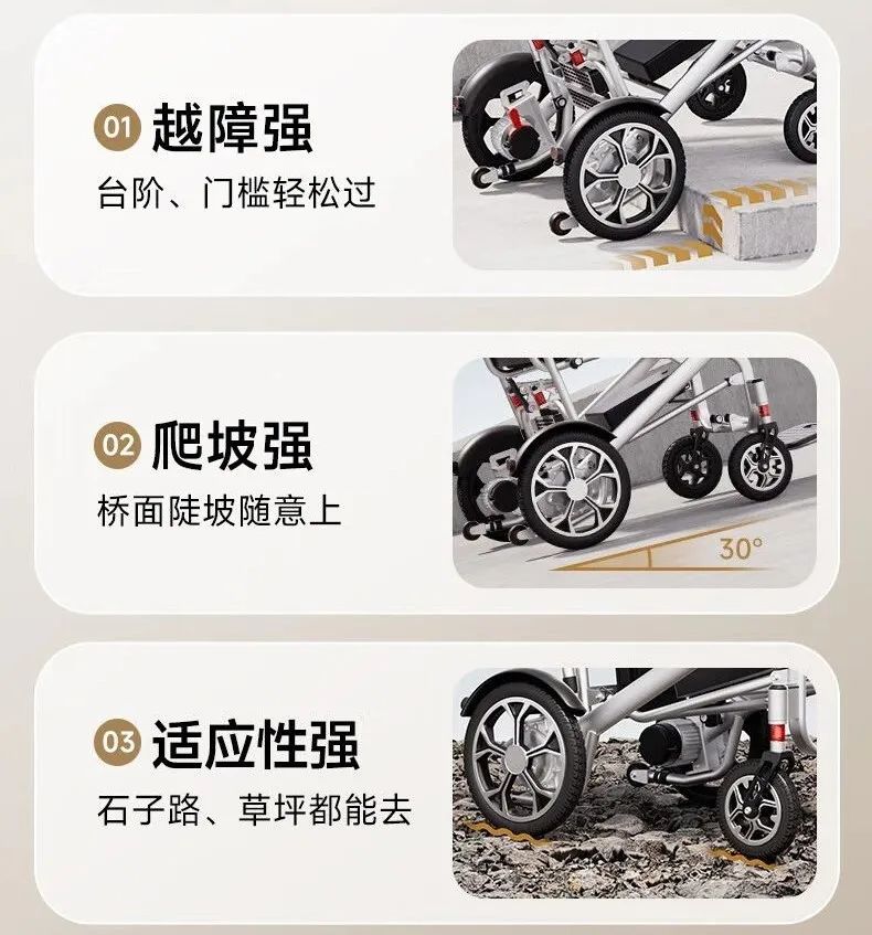 它輕便折疊的設(shè)計使得攜帶和存放都非常方便,無論是出門旅行還是日常使用,都能輕松應(yīng)對。其次,全自動鋰電池驅(qū)動系統(tǒng)讓操作變得簡單快捷,老人只需輕輕按動按鈕,即可輕松控制輪椅的行駛方向和速度。此外,無刷電機的應(yīng)用使得輪椅運行更加平穩(wěn),減少了噪音和震動,為老人提供更加舒適的乘坐體驗。