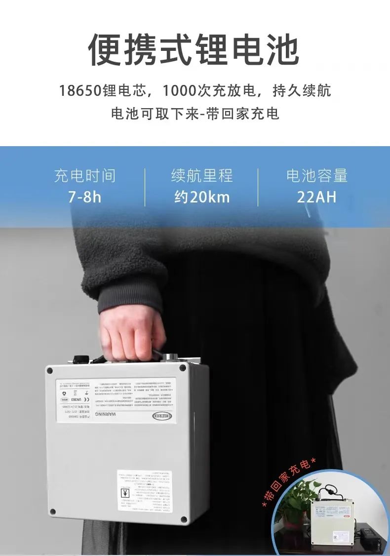 坐墊靠背采用抗菌、阻燃、防霉面料,通風(fēng)透氣。整車采用電磁自動剎車系統(tǒng),安全可靠,放心行駛。便攜式24V12Ah鋰電池,容量大跑得遠(yuǎn),輕松拆取。只需在手機APP或者小程序上一鍵操作,就能自動開合折疊,方便快捷,智能安全。