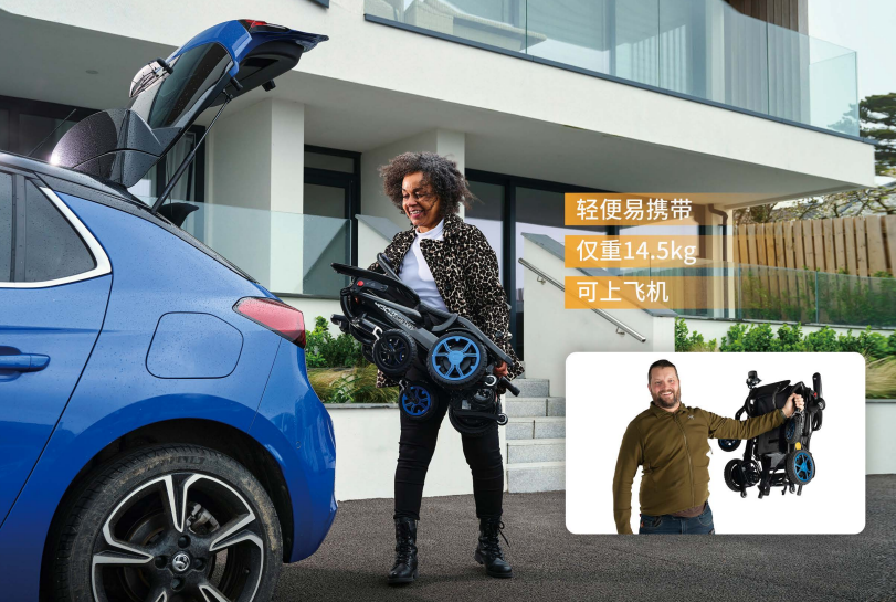 輕便短距離出游,可使用自帶電池一塊(1.4kg),續(xù)航12km。遠(yuǎn)行出游,可在電池倉多放一塊電池,續(xù)航24km。輕便的電池僅重1.4kg,可放置在雜物袋內(nèi)備用。扶手一鍵快掀,幫助轉(zhuǎn)移位,控制器可根據(jù)使用習(xí)慣,更換左右手位置,運輸安全帶便于折疊運輸。