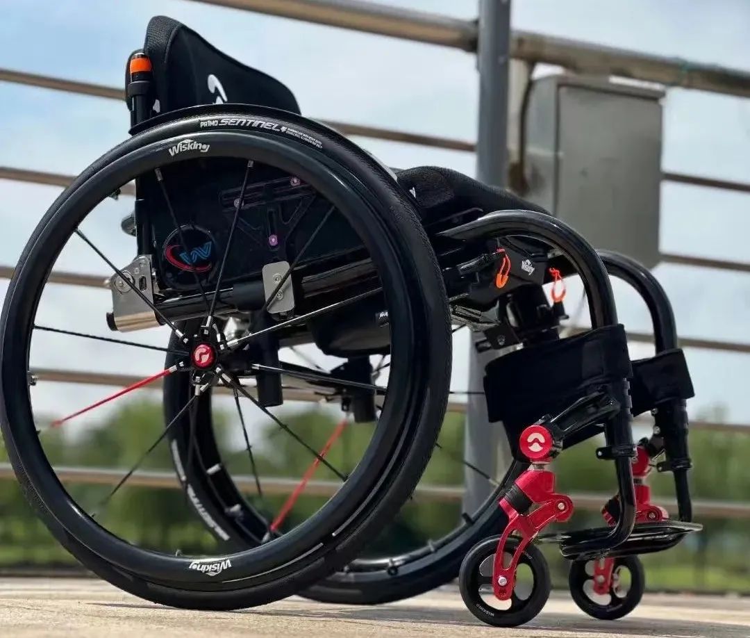 全碳纖維材料的應(yīng)用是這款輪椅最引人注目的設(shè)計亮點。相比傳統(tǒng)的金屬或塑料材質(zhì),碳纖維不僅大幅降低了輪椅的重量至僅有10KG,還保持了極高的穩(wěn)定性和耐用性。