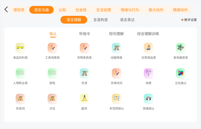 自閉癥評(píng)估與訓(xùn)練儀集多種國(guó)內(nèi)外權(quán)威專業(yè)的評(píng)估工具,并配套相應(yīng)的評(píng)估手冊(cè)和操作道具,同時(shí)和后續(xù)的訓(xùn)練及個(gè)別教育計(jì)劃內(nèi)容啟動(dòng)關(guān)聯(lián),可根據(jù)評(píng)估結(jié)果開展針對(duì)性訓(xùn)練。該系統(tǒng)包括社會(huì)交往、認(rèn)知訓(xùn)練、語言溝通、感知覺、職業(yè)能力等八大維度的訓(xùn)練內(nèi)容,涵蓋了數(shù)十個(gè)完全不同的個(gè)性化訓(xùn)練目標(biāo)。