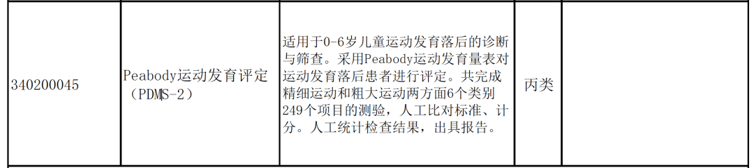 河南也將構音障礙、職業(yè)能力評定、職業(yè)功能訓練等放進了基本醫(yī)保的康復類目錄。同時將Peabody運動發(fā)育評定也納入了醫(yī)保。