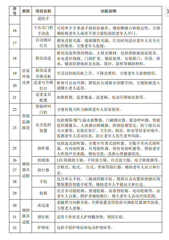 對(duì)購(gòu)置《居家適老化改造物品和材料購(gòu)置建議目錄》內(nèi)的物品和材料給予補(bǔ)貼。