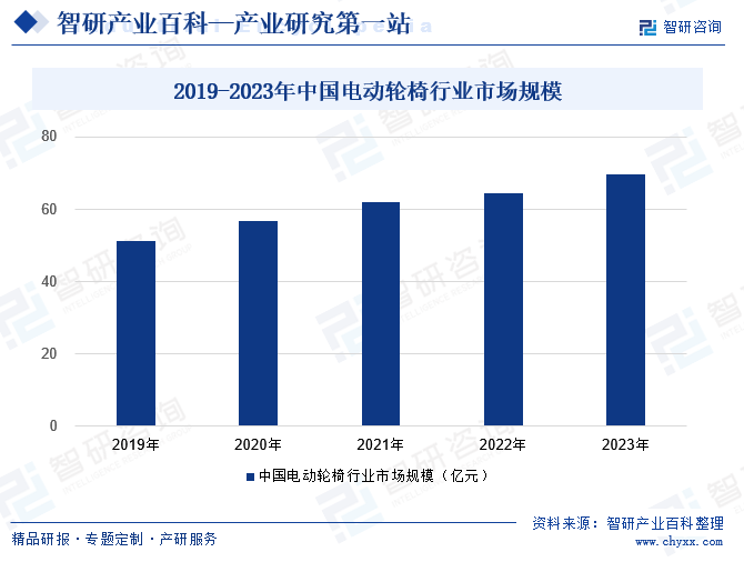隨著全球人口老齡化的不斷加劇以及殘疾人口數量的穩(wěn)步增長,電動輪椅車的需求正呈現(xiàn)出顯著的增長趨勢。面對行動不便的困境,越來越多的老年人開始依賴電動輪椅作為他們日常生活中的重要代步工具,而殘疾人群體更是迫切需要電動輪椅來滿足他們的出行需求。2023年中國電動輪椅行業(yè)市場規(guī)模為69.72億元,同比增長8.13%。隨著國內老齡化問題的日益凸顯,預計對電動輪椅車的需求將持續(xù)增加,從而推動整個行業(yè)市場規(guī)模的進一步上漲。