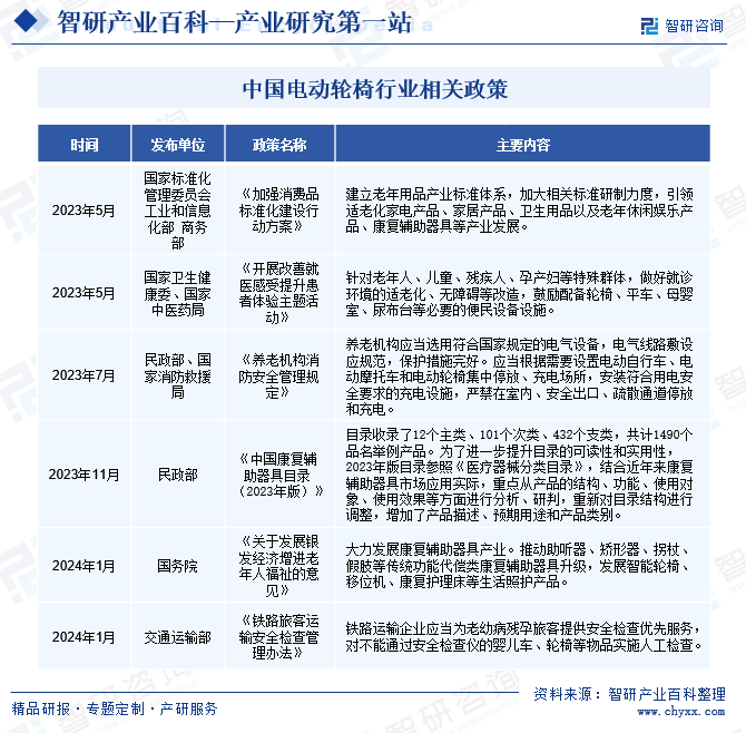 中國政府高度重視老年人福祉和康復輔助器具產業(yè)的發(fā)展,相繼出臺了一系列政策,旨在推動產業(yè)創(chuàng)新和升級。這些政策不僅提供了稅收優(yōu)惠、資金補貼等激勵措施,還鼓勵了金融機構和社會資本對電動輪椅行業(yè)的投資,促進了行業(yè)技術進步和市場擴大。政府的這些舉措為電動輪椅行業(yè)的發(fā)展提供了良好的政策環(huán)境和資金支持。