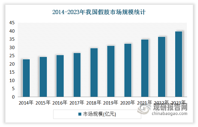 觀研天下數(shù)據(jù)表明,2023年中國(guó)假肢市場(chǎng)規(guī)模已接近40億元人民幣,其預(yù)測(cè)2024-2031年中國(guó)假肢市場(chǎng)的年均復(fù)合增長(zhǎng)率(CAGR)約為15.8%。