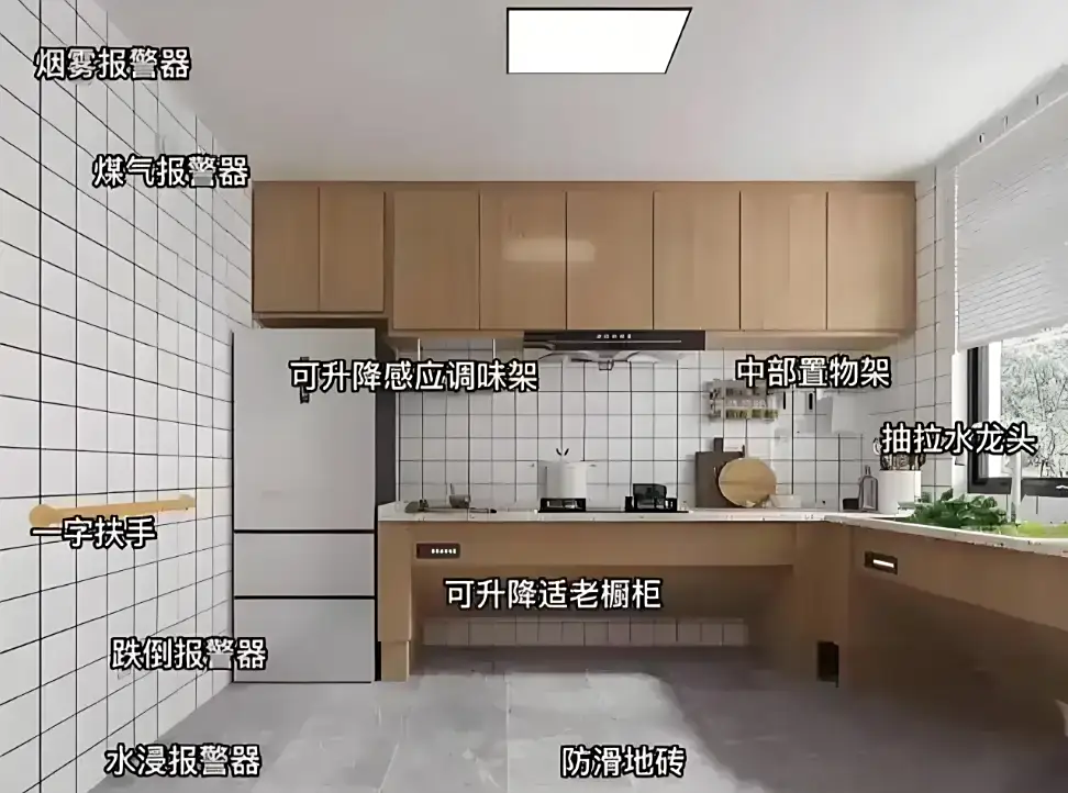 適老化改造通過“細(xì)節(jié)關(guān)懷”幫助老人重獲主動權(quán):降低廚房臺面高度,讓烹飪不再“仰頸費力”;
