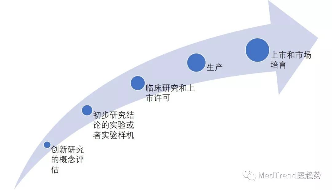 醫(yī)療機器人從實驗室到商業(yè)化,一般要經(jīng)歷創(chuàng)新研究的概念評估、初步研究結(jié)論的實驗或者實驗樣機、臨床研究和上市許可、生產(chǎn)、上市和市場培育5個階段,這一過程往往會耗費超過十年時間。比如達芬奇機器人,從實驗室到做成產(chǎn)品、進行產(chǎn)業(yè)化,用了14年。