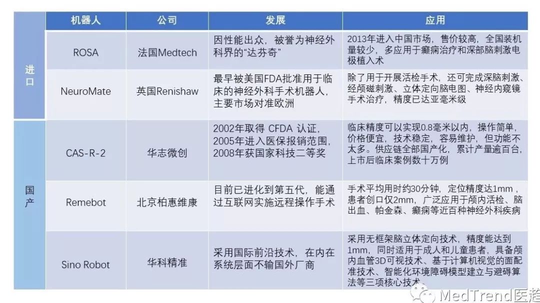 ▲國內(nèi)外主要神經(jīng)外科手術(shù)機器人概況