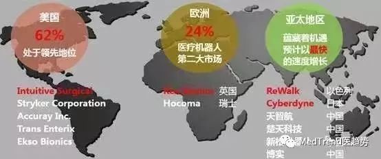 ▲全球醫(yī)療機器人市場份額分布圖