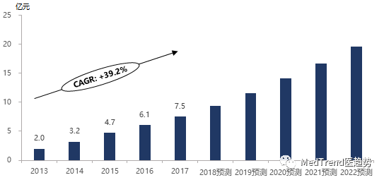 ▲中國醫(yī)療機器人市場規(guī)模,2013-2022預(yù)測
