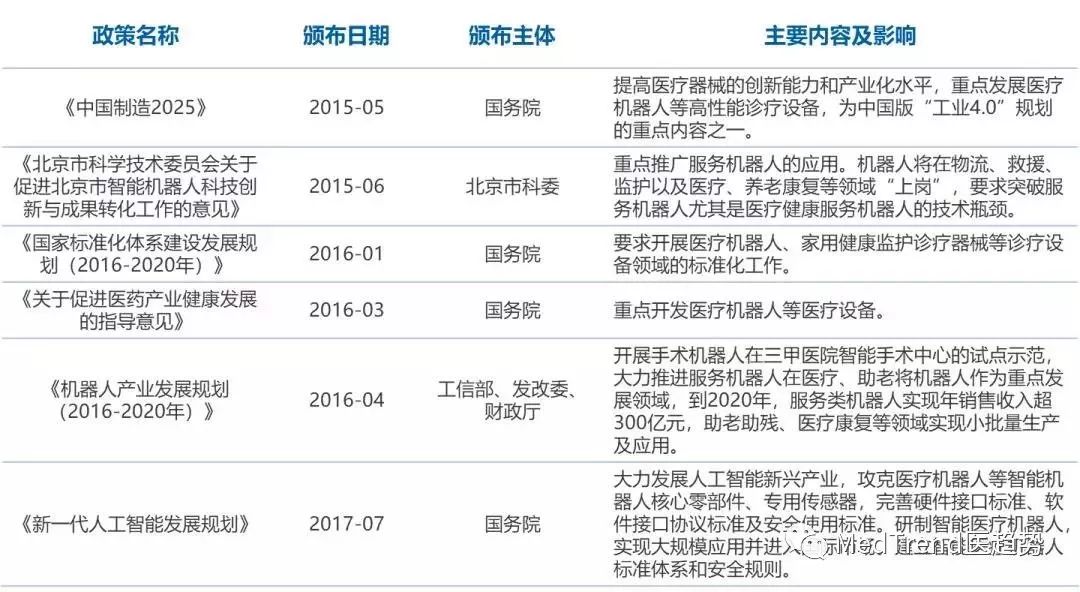醫(yī)療機器人作為高科技、高性能的醫(yī)療器械,支持其研發(fā)生產(chǎn)也一直是各大政策文件關(guān)注的重點。