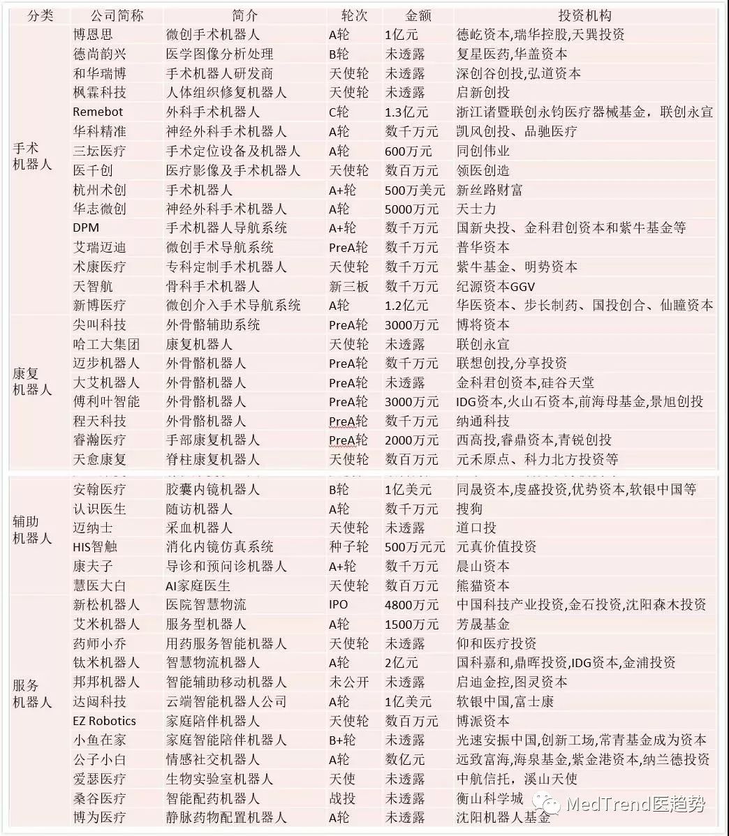 ▲部分醫(yī)療機器人公司/項目投融資情況