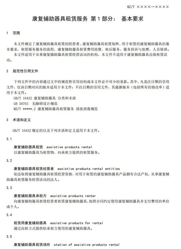昨日下午,民政部網(wǎng)站最新發(fā)布了《康復(fù)輔助器具租賃服務(wù) 第1部分:基本要求》和《康復(fù)輔助器具租賃服務(wù) 第2部分:清洗消毒規(guī)范》行業(yè)標(biāo)準(zhǔn)征求意見稿。