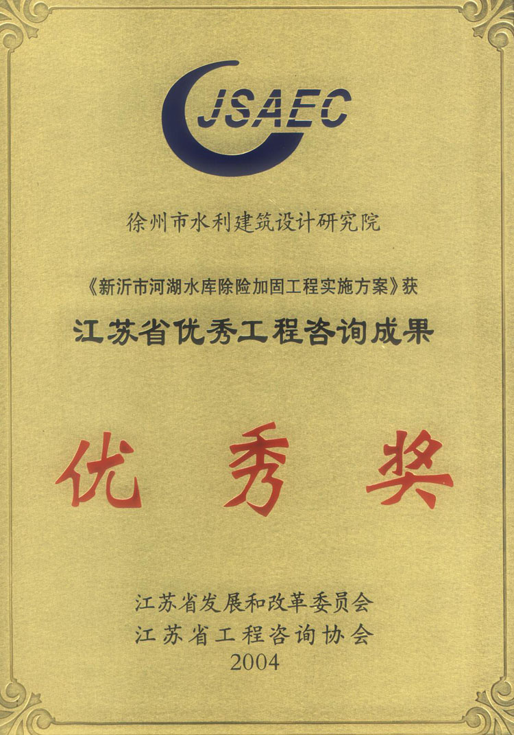 《新沂阿湖水庫(kù)除險(xiǎn)加固工程實(shí)施方案》省咨詢(xún)成果獎(jiǎng)(2004)